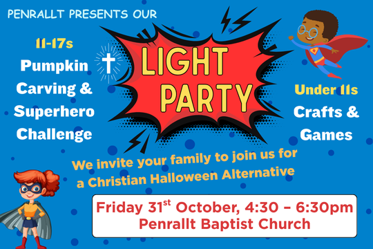 Our Light Party provides a Christian alternative to halloween parties, with activities for children of all ages. Please book places in advance. Note that under 18s must be supervised by an adult at all times. More details on the booking page.